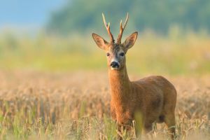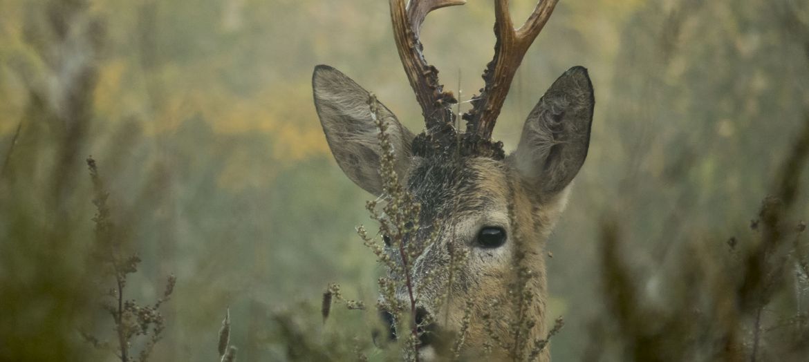 My guide stopped the engine at the end of a never-ending hedge stretching hundreds of meters in front of us only to disappear behind a low hill. The enormous field was harvested but there were plenty of green weeds scattered in tuffs all over the place. 500 meters away two roebucks were staring at us. Behind them, there was a roe doe and two fawns browsing. There was absolutely no chance of getting in range of these animals but my experienced guide had another simple plan. Slowly and with the wind in our faces, we would walk along the hedge up the hill. With a little luck, we would surprise some deer on the other side of the hilltop at more reasonable distances.