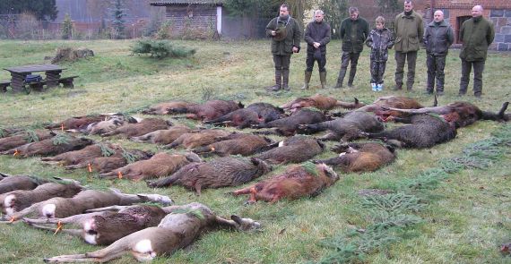 Normalerweise benötigt man für eine kleine Drückjagd 5-7 Schützen. Diese Jagd findet normalerweise vormittags statt, während nachmittags eine individuelle Ansitz- oder Pirschjagd stattfindet. Bei diese Kombinationsjagden werden oft sehr anständige Strecken erzielt, und es ist immer sehr angenehm, die Zeit in der Gesellschaft seiner Jagdfreunde zu verbringen.