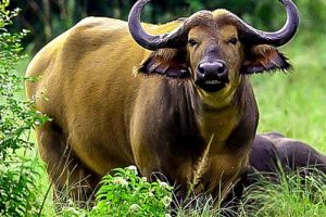Videnskabeligt navn: Syncerus caffer nanus Udbredelse: Vest- og Centralafrika, herunder Liberia, Ghana, Nigeria, Cameroun, Gabon, Congo og Den Centralafrikanske Republik. Levested: Tætte regnskove og sumpede områder. Foretrækker fugtige, skovklædte egne og opholder sig ofte i nærheden af vandkilder. Beskrivelse: Den Dværgskovbøffel er en mindre...