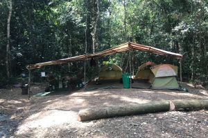 Während der Jagd übernachten Sie in Einmannzelten, die unter einer großen Plane aufgestellt sind. Die Zelte sind mit Matratzen ausgestattet und dienen auch als Moskitonetze. Es werden täglich zwei Mahlzeiten serviert – eine nach der Morgenjagd und eine vor der Abendjagd – mit ständig verfügbarem frischem Trinkwasser.