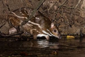 Videnskabeligt navn: Hyemoschus aquaticus Udbredelse: Water chevrotain findes i de tropiske regnskove i Vestafrika, primært i Guinea, Sierra Leone, Liberia, Elfenbenskysten og Cameroun. De foretrækker lavlandsområder nær vandløb og søer. Levested: Vådområder, flodbredder, søer og sumpede områder. De lever ofte i tæt...