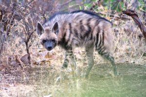 Videnskabeligt navn: Crocuta crocuta Underarter: Ingen. Udbredelse: Det meste af Afrika med udtagelse af den vestafrikanske regnskov og Sydafrika. Levested: Åben bush og græssletter. Beskrivelse: Mellemstort hundelignende dyr med kompakt krop og kraftige ben. Den opnår en vægt på ca. 70 kg og en højde på 80 cm målt over skuldrene. Hovedet er...