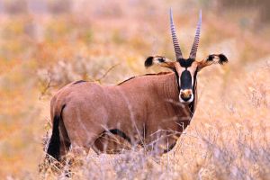 Wissenschaftlicher Name: Oryx g callotis Unterarten: Oryx-Unterart: Oryx g.callotis Verbreitung: Vom nördlichen Teil Tanzanias bis zum Süden Kenias. Lebensraum: Offenes Busch- und Grasland Beschreibung: Grosse Antilope (180-200 kg.) mit kompaktem Körper. Färbung: Graubraun, sonst wie Oryx. Typische schwarze Haarbüschel an den Lauschern. Jagdmethoden:...