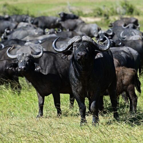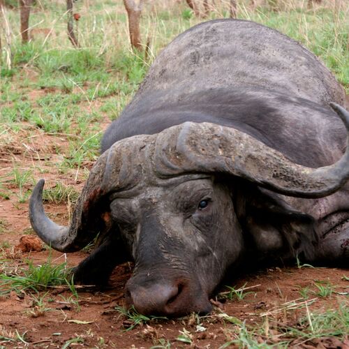 Die Jäger, die wir bisher in Uganda hatten, waren sehr begeistert. Wenn es um die Büffel geht, dann war die Rückmeldung, dass es viele sehr alte Büffelbullen gab, eine fantastische Natur in einem schönen und abwechslungsreichen Biotop, und ein Camp von höherem Standard als erwartet. Generell haben die Büffel eine grosse Auslage, typisch ostafrikanisch. Die erlegten Büffel waren zwischen 40 und 43”.