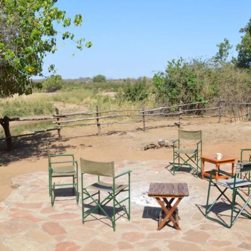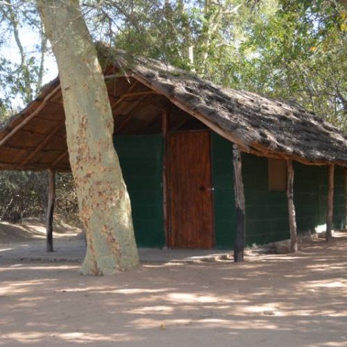 Das Camp besteht aus zwei gemauerten Hütten mit Strohdach, guten Betten und mit eigener Toilette und Bad. 2 Personen können in jeder Hütte wohnen. Es gibt auch einen gemeinsamen strohgedeckten Essbereich und einen kleinen Feuerplatz mit Aussicht zu dem Limpopo Fluss und Südafrika gerade auf der anderen Seite des Flusses. Mit anderen Worten, ein gemütliches Big-Game Camp ohne überflüssigen Luxus.
