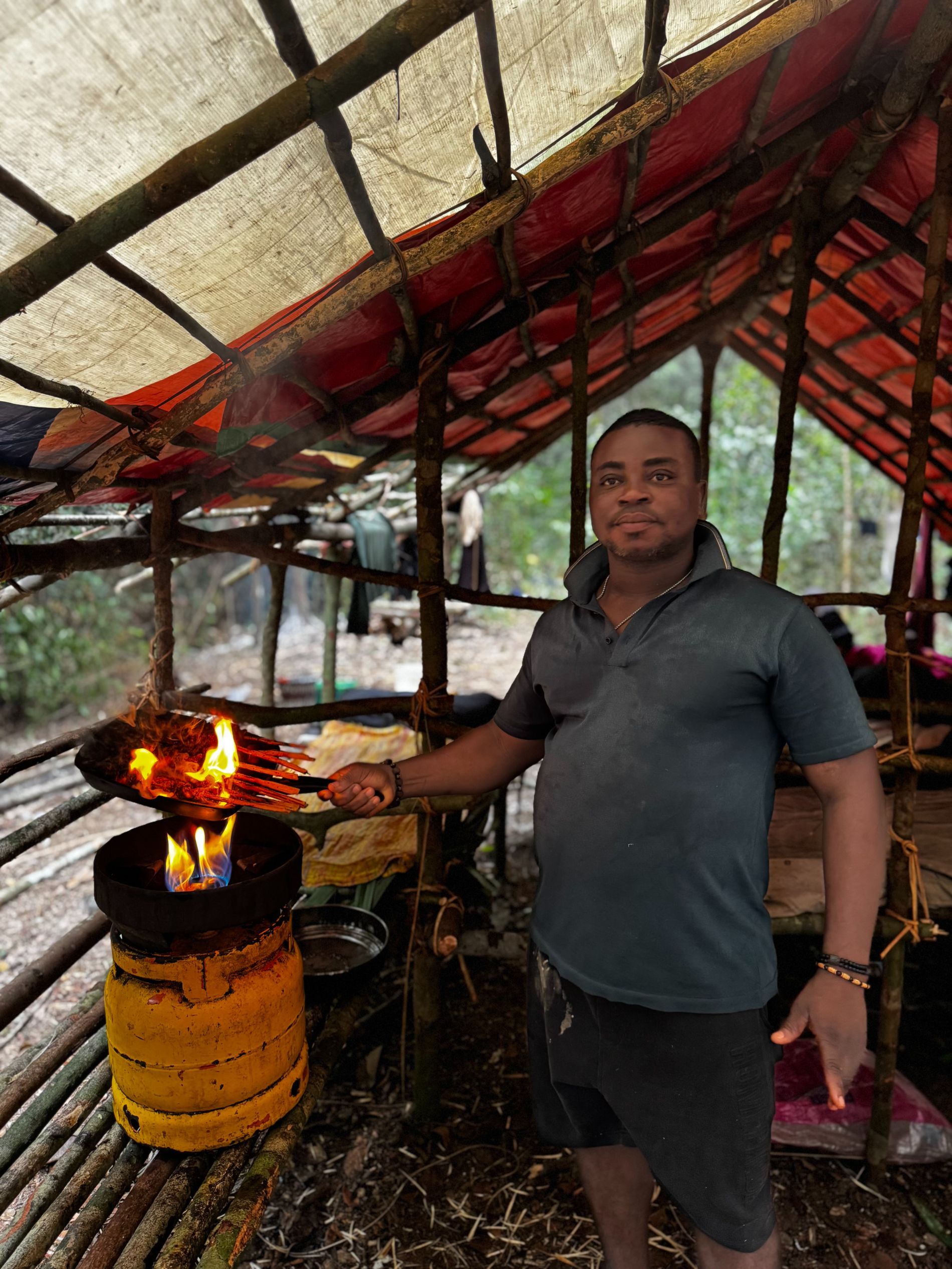Während der Jagd übernachten die Teilnehmer in Einmannzelten, die unter einer großen Plane aufgestellt sind. Die Zelte sind mit Matratzen ausgestattet und dienen gleichzeitig als Moskitonetze. Es werden täglich zwei Mahlzeiten serviert – eine nach der Morgenjagd und eine vor der Abendjagd – frisches Trinkwasser steht jederzeit zur Verfügung.