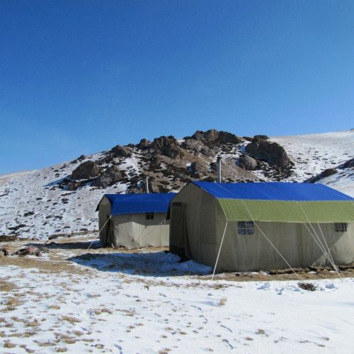 Normalerweise erfolgt die Unterkunft für die erste und die letzte Nacht in einem Basislager, das meistens aus Jurten, Jagdhütten oder Zelten besteht. Diese Lager haben keine modernen Annehmlichkeiten, aber es ist möglich zu duschen. In der Regel sind sie sauber, heimelig und warm. In diesen Lagern sind immer auch ein Koch und ein Dolmetscher. Während der Jagd selbst erfolgt die Unterbringung sehr einfach in kleinen Zelten und bei Gelegenheit in Höhlen.