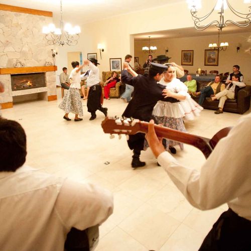Das Abendessen wird im Esszimmer der Lodge auf feinem Porzellan-Geschirr serviert. Es wird immer ein Drei-Gänge-Gourmet-Menü angeboten. Die Argentinier essen ein wenig später als die Europäer es gewohnt sind, um vor dem Dinner noch einen Cocktail in geselliger Runde nehmen zu können. Die mit Gras gefütterten Rinder gehören zu den besten der Welt. Die Steaks sind von bester Qualität und werden durch eine Reihe klassischer kontinentaler Wildgerichte ergänzt. Der Gourmet-Koch kann eine Vielzahl von argentinischen Spezialitäten zubereiten.