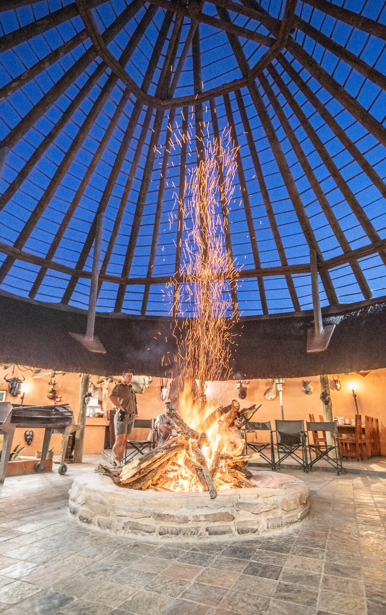 Falls man eine Abkühlung benötigt, ist auch ein Pool vorhanden. Die Mahlzeiten werden entweder im gemeinsamen Gästehaus oder im Boma eingenommen, in dem das Essen in schönem Ambiente serviert wird, mit einem Lagerfeuer am Abend. Eine Bar ist auch vorhanden.