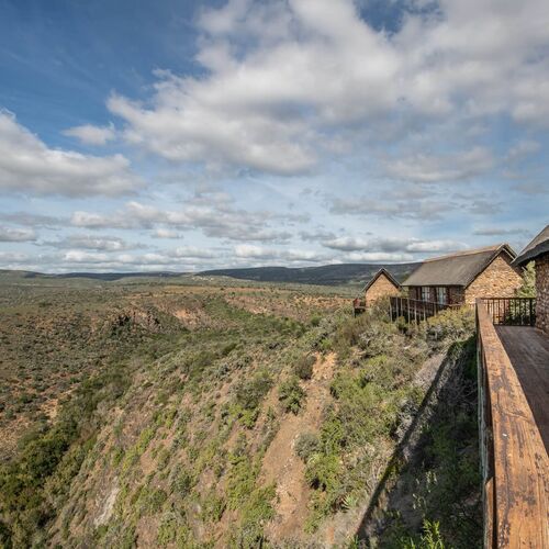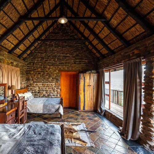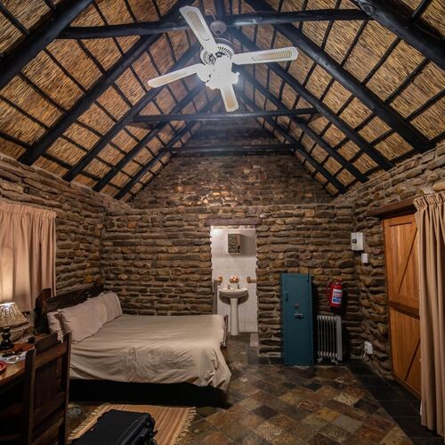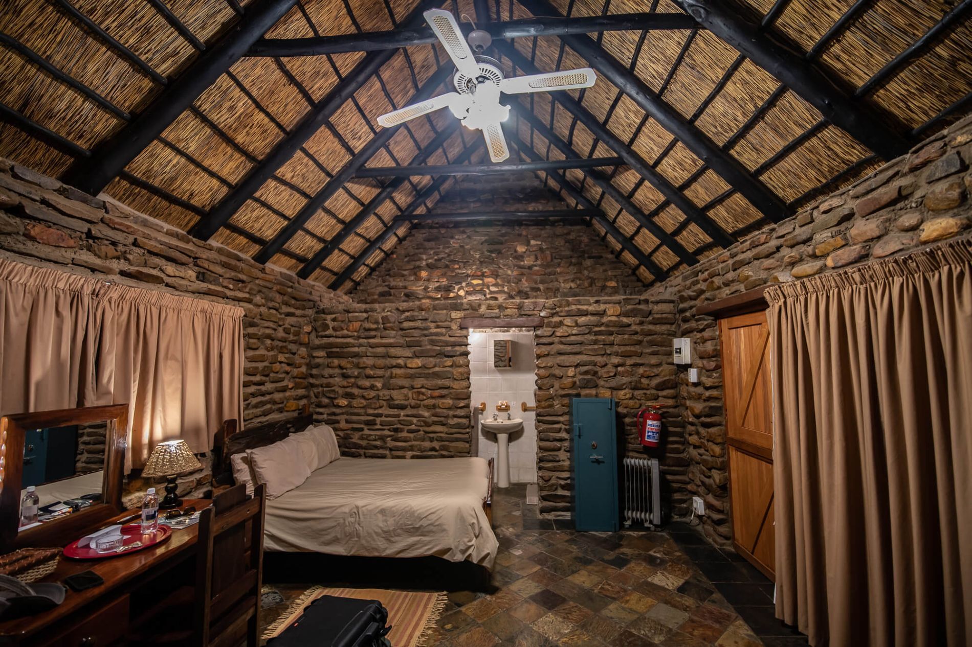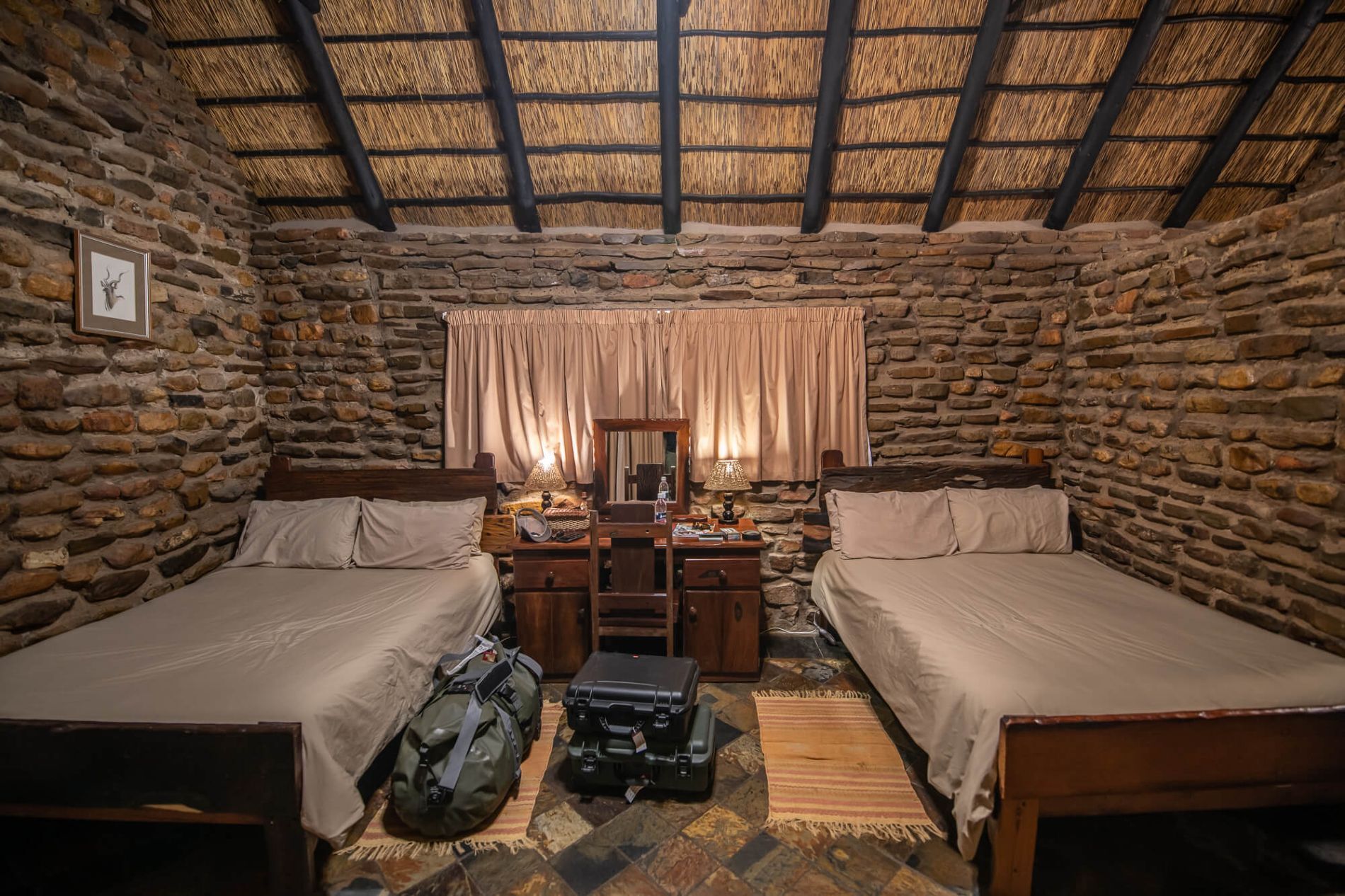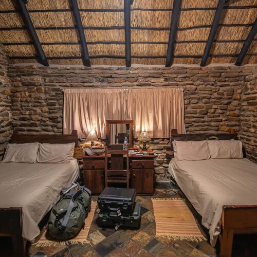 Das Camp ist schön gelegen mit Aussicht über den Busch, wo man in geräumigen Bungalows aus Stein untergebracht wird, mit eigenem Bad und Toilette und einer fantastischen Aussicht. Es gibt insgesamt 16 Bungalows, daher können an diesem Ort auch große Gruppen untergebracht werden.