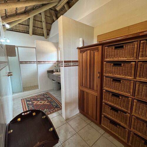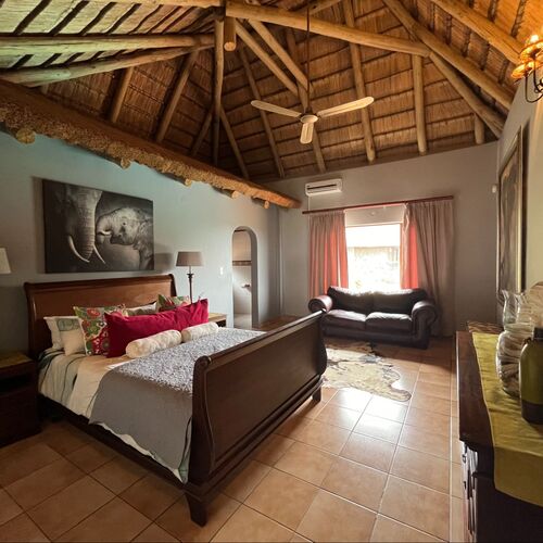 Die Lodge besteht aus 3 strohgedeckten Hütten (eine für 4 Personen und zwei für 2 Personen) und 2 Schlafzimmern mit eigenem Bad (für 2 Personen) - alle mit eigenem Bad. Hier können jeweils fünf Paare oder Familien- und Jagdgruppen untergebracht werden. Darüber hinaus dürfen die Partner des Jägers sie auf ihren Jagdausflügen begleiten.