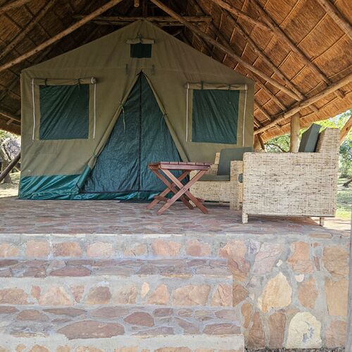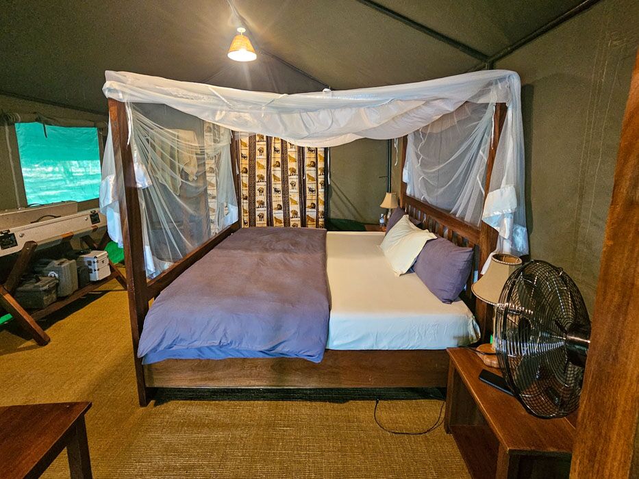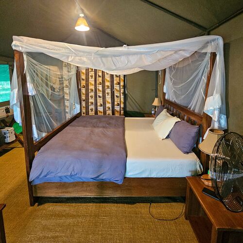Die Unterbringung erfolgt in klassischen Safarizelten, strohgedeckten Zelten oder soliden Bungalows – alle mit eigenem Bad und WC. Der Standard ist gut und authentisch, mit Fokus auf Komfort inmitten der Natur statt auf klassischen Luxus.