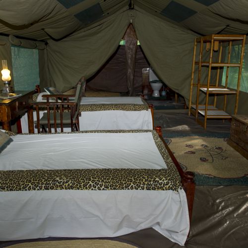 Alle Camps wurden im typisch ostafrikanischen Stil gebaut. Sie sind sehr komfortabel ausgestattet mit geräumigen, insektensicheren Zweibett-Zelten, guten Betten und Bettwäsche, Nachttischen, Kleiderständer, Regalen und Stühlen. Jedes Zelt verfügt über ein eigenes Badezimmer mit warmem und kaltem Wasser. Alle Camps haben ein gemütliches Aufenthalts- / Esszelt. Natürlich gibt es auch eine gut bestückte Bar mit Kühlschrank für eiskalte Getränke.