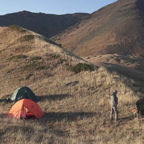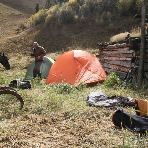 Base Camp : jagthytter eller yurter (Halvkugleformet Filttelt)