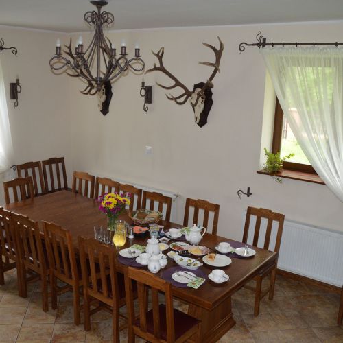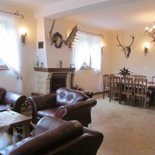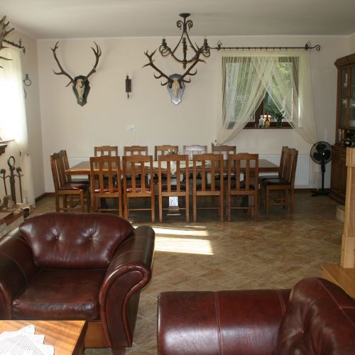 Die Unterbringung erfolgt im gemütlichen Jagdhaus des Reviers in einer schönen Umgebung. Der Gästeaufenthaltsbereich im ersten Stock umfasst 6 Doppelzimmer, alle mit eigenem Bad und Toilette. Ein Kühlschrank steht den Gästen zur Verfügung. Es gibt Zugang zu einer abschließbaren Garage und einem Kühlhaus. Die Mahlzeiten werden im Aufenthalts-/Speisesaal im Erdgeschoss eingenommen. WLAN und Mobilfunkempfang sind vorhanden.