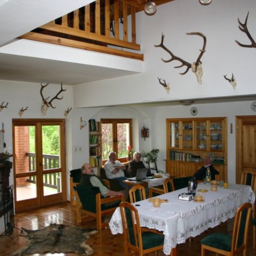 Die Unterbringung erfolgt in einem attraktiven Jagdhaus bei Förster Jan Piatkowski und seiner Frau. Diese Unterkunft gehört zur Kategorie "S". Es gibt ein wirklich gemütliches Wohnzimmer, 4 Doppel- und 1 Einzelzimmer, alle mit eigenem Bad und WC. Es gibt einen Kühlschrank und eine abschließbare Garage für die Gäste. Auf dem Fluss Brda kann man Kanu fahren. WiFi (nicht stabil) und Mobilfunkabdeckung stehen zur Verfügung.