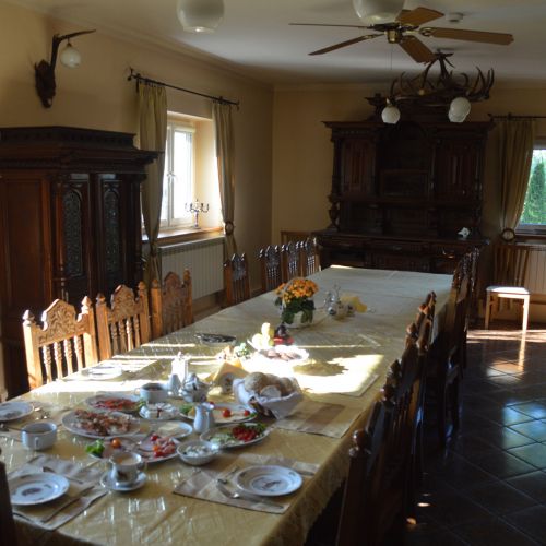 Die Unterbringung erfolgt im Jagdhaus des Reviers, von dem aus man während der Brunftzeit des Rotwilds im September das Röhren der Hirsche direkt vor dem Haus hören kann. Der Gästebereich im Obergeschoss umfasst 1 Einzelzimmer, 4 Doppelzimmer, 3 Dreibettzimmer und 1 Vierbettzimmer. Ein Kühlschrank steht unseren Gästen zur Verfügung. Im Untergeschoss befindet sich ein gemütlicher Aufenthaltsraum mit Kamin sowie ein Speiseraum. Es gibt Zugang zu einer abgeschlossenen Garage und einem Kühlraum. Der Jagdleiter heißt Franciszek Matysiak und spricht etwas Deutsch. Er und seine Jagdleiter sind äußerst professionell und bei unseren Kunden sehr beliebt. Es gibt Wi-Fi und Mobilfunkempfang.