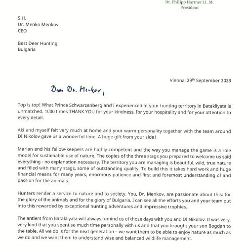 Vor einigen Jahren begann ein wohlhabender und leidenschaftlicher bulgarischer Jäger eine enge Zusammenarbeit mit mehreren Staatsrevieren und Nationalparks im Nordosten des Landes. Durch konsequentes und aufwändiges Revier- und Wildtiermanagement entstand hier über die Jahre ein Wildbestand von Weltklasse – insbesondere beim Rotwild.