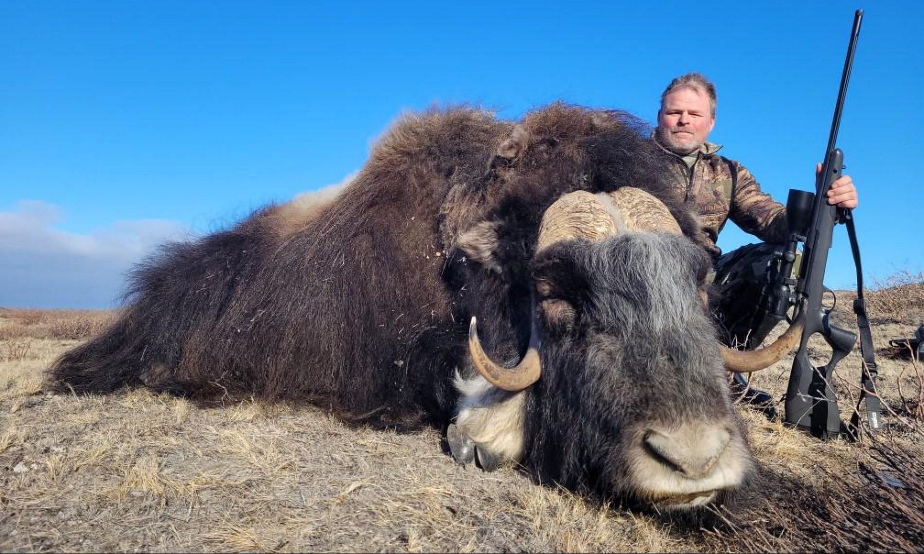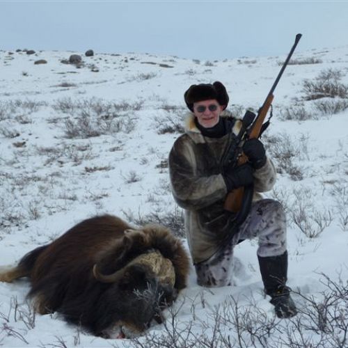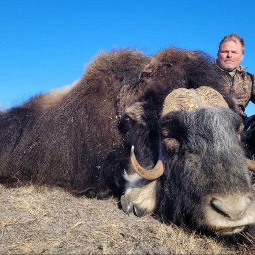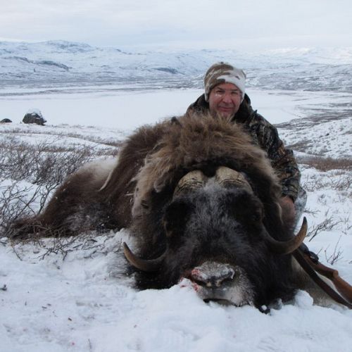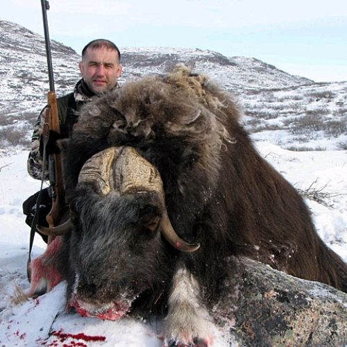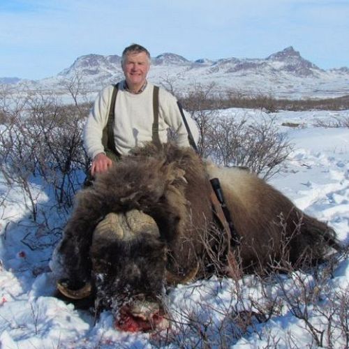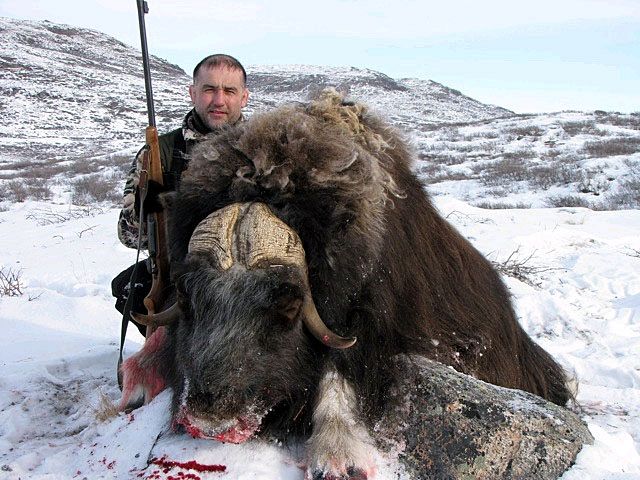Der Moschusochse ist gerade in den „Europäischen Grand Slam“ aufgenommen worden. Er ist ein Tundra-Bewohner und mit Schafen und Ziegen näher verwandt als mit Rindern. Der Moschusochse wurde ursprünglich nur an der Ostküste Grönlands gefunden, da er von den Fjorden, Gletschern und Bergen an der Verbreitung über ganz Grönland gehindert wurde. Zu Beginn der 60er Jahre wurden 27 Moschusochsen in der Nähe von Kangerlussuaq ausgesetzt - einem Jagdgebiet von 6.600 km² ohne Grenzen.