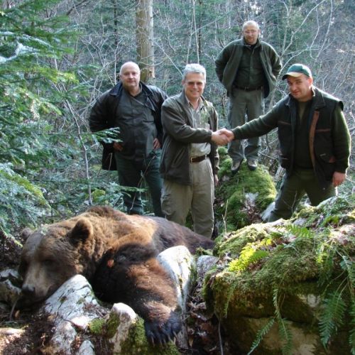 Der Braunbärenbestand in Kroatien ist sehr gut, mit einer geschätzten Anzahl von mehr als 900 Tieren. Jedes Jahr werden eine Reihe Medaillen-Bären erlegt, und Goldmedaillen kommen oft vor. Goldmedaillen beginnen bei 300 CIC- Punkten, und ein Großteil unserer Jäger kommt mit einer Trophäe dieser Kategorie nach Hause. In 2008 hat ein Jäger von uns einen neuen Nationalrekord mit 511 CIC erlegt - heute liegt der Nationalrekord bei über 580 CIC !