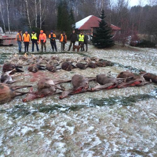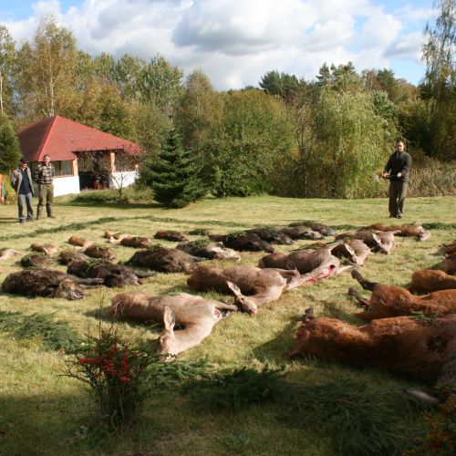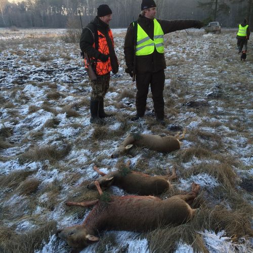 When we ended the hunt after three short days, we arranged all the deer for a photo on the lawn in front of the hunting house. As a final ceremony, our guides played the horn signals for “roe deer” and “Darz Bór” over the dead animals. The trophies of this remarkable three-day adventure were plentiful. First and foremost there is the happy memories of the hunt and the nice trip in the company of a good friend. However, the nice photos and not least the fantastic roe deer venison that hibernates in my deep freezer are also great trophies indeed.