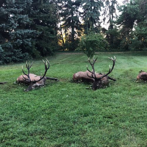 Hohe Erfolgsquote. Wirklich kapitale Trophäen. Hier sind Hirsche über 16 kg erlegt worden. Das Durchschnittstrophäengewicht der Brunfthirsche in diesen Revieren liegt bei über 10 kg. Hier sollten Sie jagen, wenn Sie gezielt nach dem Stärksten gehen.