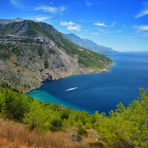 Bei dieser Bergjagd auf Gams erwartet Sie ein atemberaubender Blick auf diese hügelige Landschaft. Die Jagd kann nach Ihrer körperlichen Fitness geplant werden, da es möglich ist, mehr oder weniger ganz nach oben zu fahren und dann entlang der Bergkette oder etwas weiter nach unten zu jagen. Genießen Sie den Blick auf die Adria und einige der Inseln - es ist einfach fantastisch.