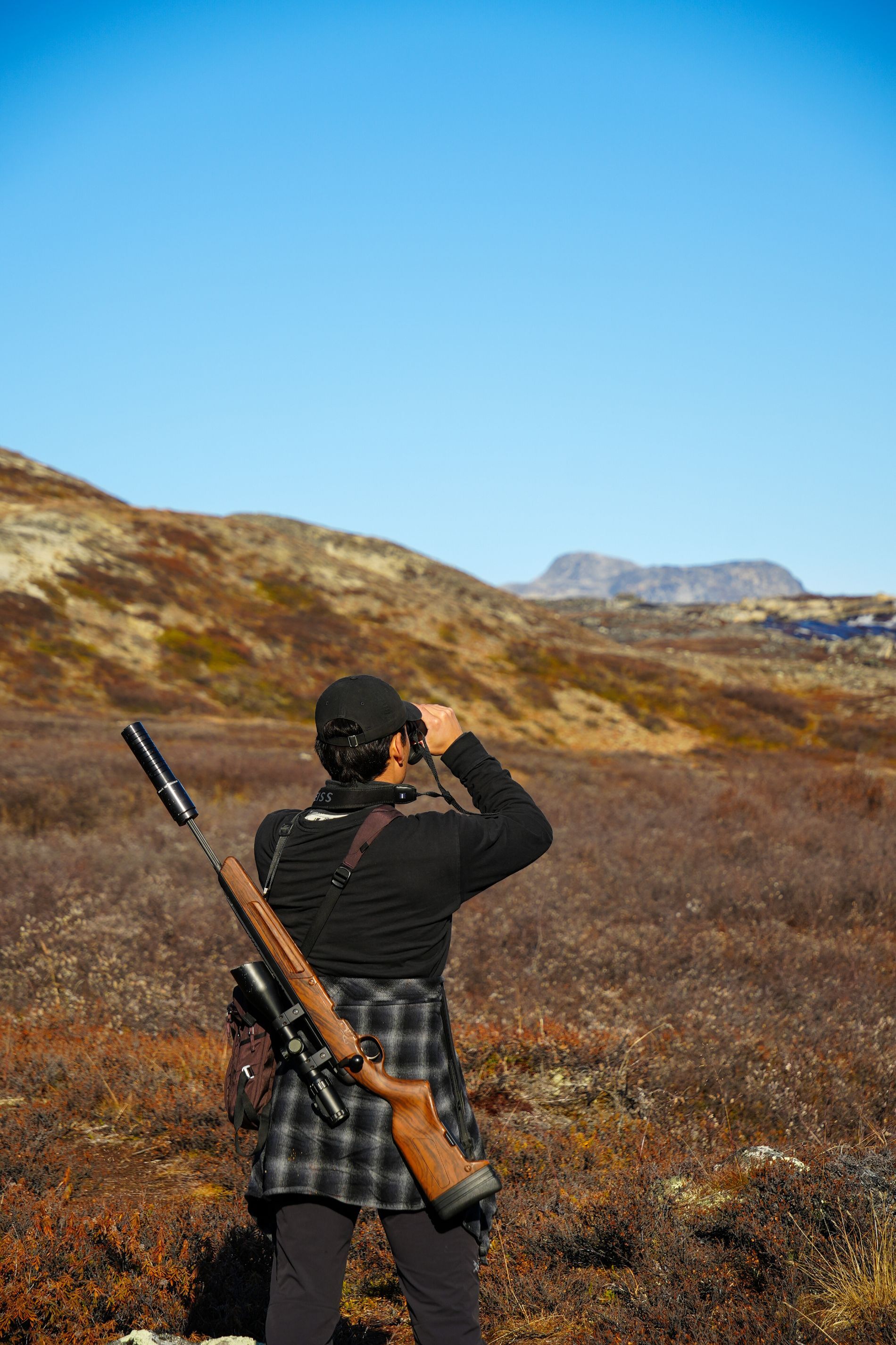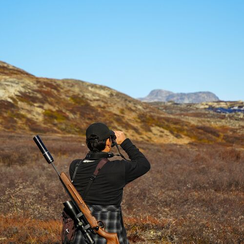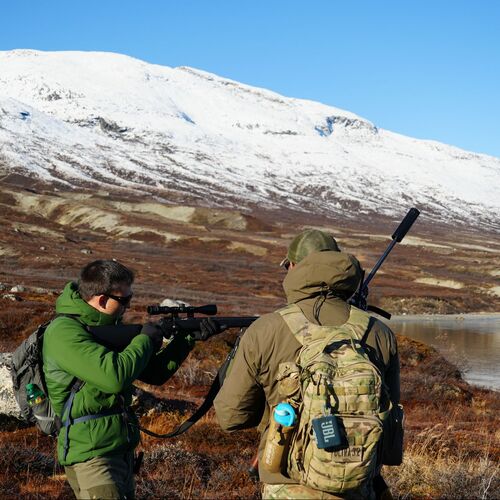 Das Gelände ist sehr hügelig, und man sollte in der Lage sein, zwischen 10 und 20 km pro Tag zu wandern, mit bis zu 1000 Höhenmetern. Hier bestimmen das Wetter, der Wind und die Tiere das Tempo, und wir sind lediglich Gäste. In den Gebieten, in denen wir jagen, gibt es praktisch keine Infrastruktur, was natürlich auch hohe Anforderungen an Sicherheitsausrüstung und Signalgeräte stellt. Das Gelände ist sehr uneben und stellenweise recht unzugänglich.