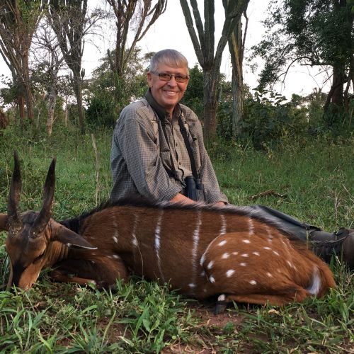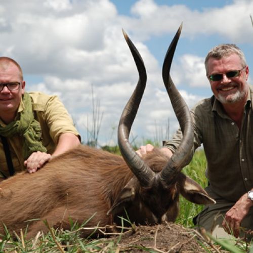 Wir jagen in Kafu von Januar bis Dezember. Dies ist die beste Konzession für starke Sitatunga. Unser Trophäen-Durchschnitt liegt bei 26 Zoll mit einigen Bullen, die 29 bis 31.5 Zoll erreichen.