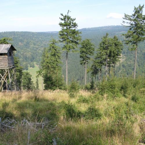 Das Staatsrevier Ladek Zdroj ist ein wahres Juwel in den Sudeten im malerischen Südwesten Polens an der tschechischen Grenze. Mit einer Gesamtfläche von 11.200 Hektar, von denen 9.500 Hektar hauptsächlich aus Nadelwäldern bestehen, bietet das Revier außergewöhnliche Jagderlebnisse in einer schönen und hügeligen Landschaft. Die Sudeten sind sanfte, bewaldete Berge mit sehr hohen Fichten und reichlich Bodendecke in Form von Gras und Farnen. Ladek Zdroj verfügt über 75 Hochstände und Hochsitze sowie 20 Futterplätze. Es können bis zu 4-5 Jäger gleichzeitig im Revier jagen.