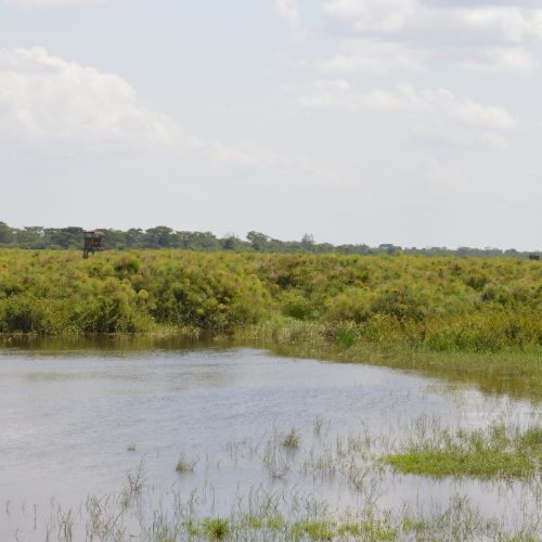 Diese Konzession befindet sich im Südwesten von Uganda um den Lake Mburo Nationalpark herum. Die Größe dieser Konzession beträgt 150.000 ha. Die Landschaft wird von leichten Hügeln mit Dickbusch, kleinen Tälern mit Buchten und lichtem Wald dominiert. In der Nähe des Flusses befinden sich dichte Wälder und große Strecken von Papyrus-Sumpfgebieten. Das Gebiet hat gute Populationen von ostafrikanischem Buschbock, östlichem Bohor Reedbock, Sitatunga, Topi, Patterson Eland, ostafrikanischem Impala, Warzenschwein, Kap-Büffel und ostafrikanischem Defassa-Wasserbock. Die Hornlängen von Impala und Wasserbock überschreiten oft die 30 Inch. Wir jagen hier von Januar bis Dezember.