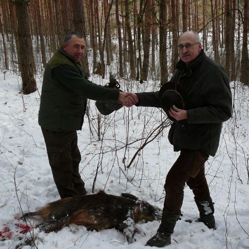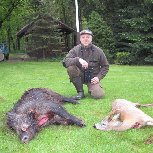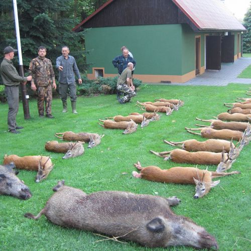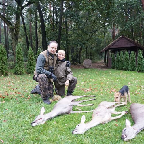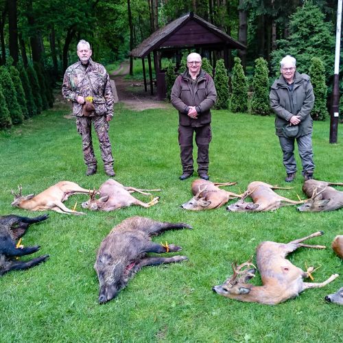Das Revier bietet die Jagd auf Reh-, Rot- und Schwarzwild. Rund 110 Böcke werden hier jährlich geschossen. Die Trophäenstärke der meisten Böcke ist unter 300 liegt g, aber eine Reihe von Trophäen liegt zwischen 300-400 g sowie ein oder zwei über 400 g. Die jährliche Rothirsch-Quote beträgt 11 Hirsche - von denen die meisten eine Trophäenstärke von etwa 5 kg haben, aber Trophäen über 6-7 kg kommen auch vor. Maniszewo hat eine dichte Population von Wildschweinen. Diese können auf individuellen Jagden während der gesamten Saison gejagt werden sowie auf den Drückjagden im Herbst und Winter.