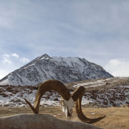 Das Marco Polo Schaf (Ovis ammon polii) findet man in den Bergen im südlichen Teil des Landes, vom Fluss Naryn bis zur chinesischen Grenze. Normalerweise ist das Marco Polo Schaf in Kirgisien nicht ganz so groß wie das im Pamir-Gebirge in Tadschikistan. Die Trophäenstärke liegt im Schnitt zwischen 50“-53“ (125-135 cm). Sein bevorzugter Lebensraum ist relativ flach - Gebirgs-Plateaus in einer Höhe von 3.500-4.500 m.