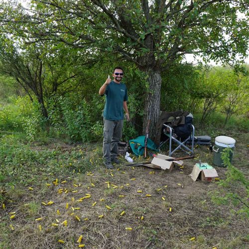 Ich habe etwas Zeit mit Fotografieren verbracht, daher führt Leif unseren Wettbewerb mit über 1.000 Tauben an. Die örtlichen Bauern sind froh, dass wir hier die Tauben geschossen haben. Obwohl wir alle glauben, dass wir noch nie so viele Tauben gesehen haben, ist Jamie traurig, dass dies nicht wirklich ein guter Tag war.