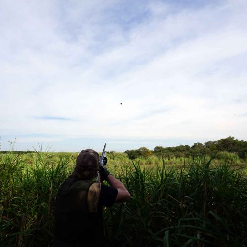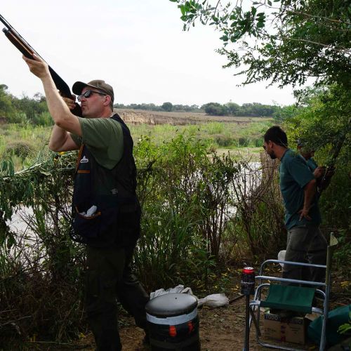 Hinter mir steht Jamie, mein ”Bird Boy”. Er hält eine der Benelli-Flinten, die ich geliehen habe, während ich mit der anderen schieße. ”Guter Schuss” bemerkt Jamie, als ich eine richtig dicke Taube treffe. ”Hinterher” sagt Jamie, als ich die nächste Taube fehle. Jamie hat schon viele Male als “Bird Boy” gearbeitet. Er hat ein Heftpflaster an seinem rechten Daumen, um zu verhindern, dass er Blasen bekommt. Seine Aufgabe ist es, die Flinten nachzuladen, und schließlich die geschossenen Vögel einzusammeln. "Möchtest du eine Cola?" fragt Jamie.