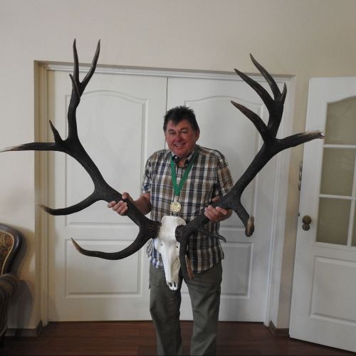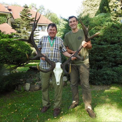1,5 Std. kommt Maciej mit den Helfern Wojtek und Karo, beide untersuchen den Hirsch und sind begeistert. Ich denke, alle sind sich einig, vor uns liegt ein besonders starker Brunfthirsch. Es ist bereits dunkel, aber nun aufbrechen, bergen und zurück zum Jagdhaus. Hier werden wir bereits erwartet. Viel Waidmannsheil, dann Strecke legen, begutachten, palavern und feiern, es wird ein langer Abend. Ich habe jetzt Zeit und jage die nächsten Tage nur noch mit der Kamera. Auch die Münsteraner Jagdfreunde hatten noch Waidmannsheil. Alle sind gespannt wann die Trophäen vom Präparator angeliefert werden. Auch so ein Jagdurlaub geht leider schnell zu Ende.Vor der Abreise erfolgt die Trophäenbewertung und das Protokoll zur Jagdreise.