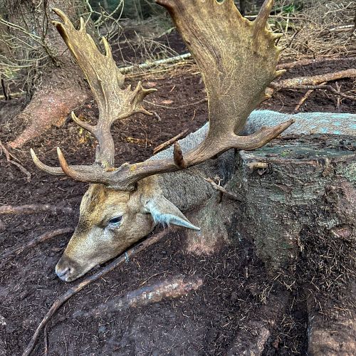Jørgen var også hurtig og nedlagde en rigtig stærk fuldskuffel allerede efter få timers jagt den første dag. En gammel kapital hjort, som var i fuld brunst, hvilket gjorde det svært at få den til skud mellem dåer, kalve og mindre hjorte.