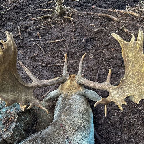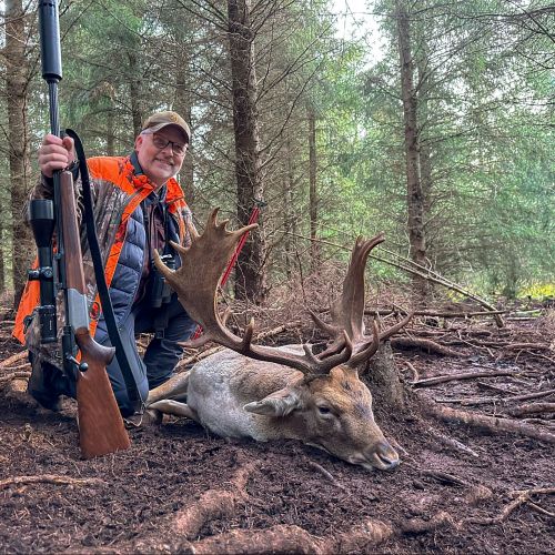 Kasper var heldig og skød en flighjort den første eftermiddag, efter at have hørt og set mange hjorte. Det var Kaspers allerførste dåhjort, så han var ovenud tilfreds.