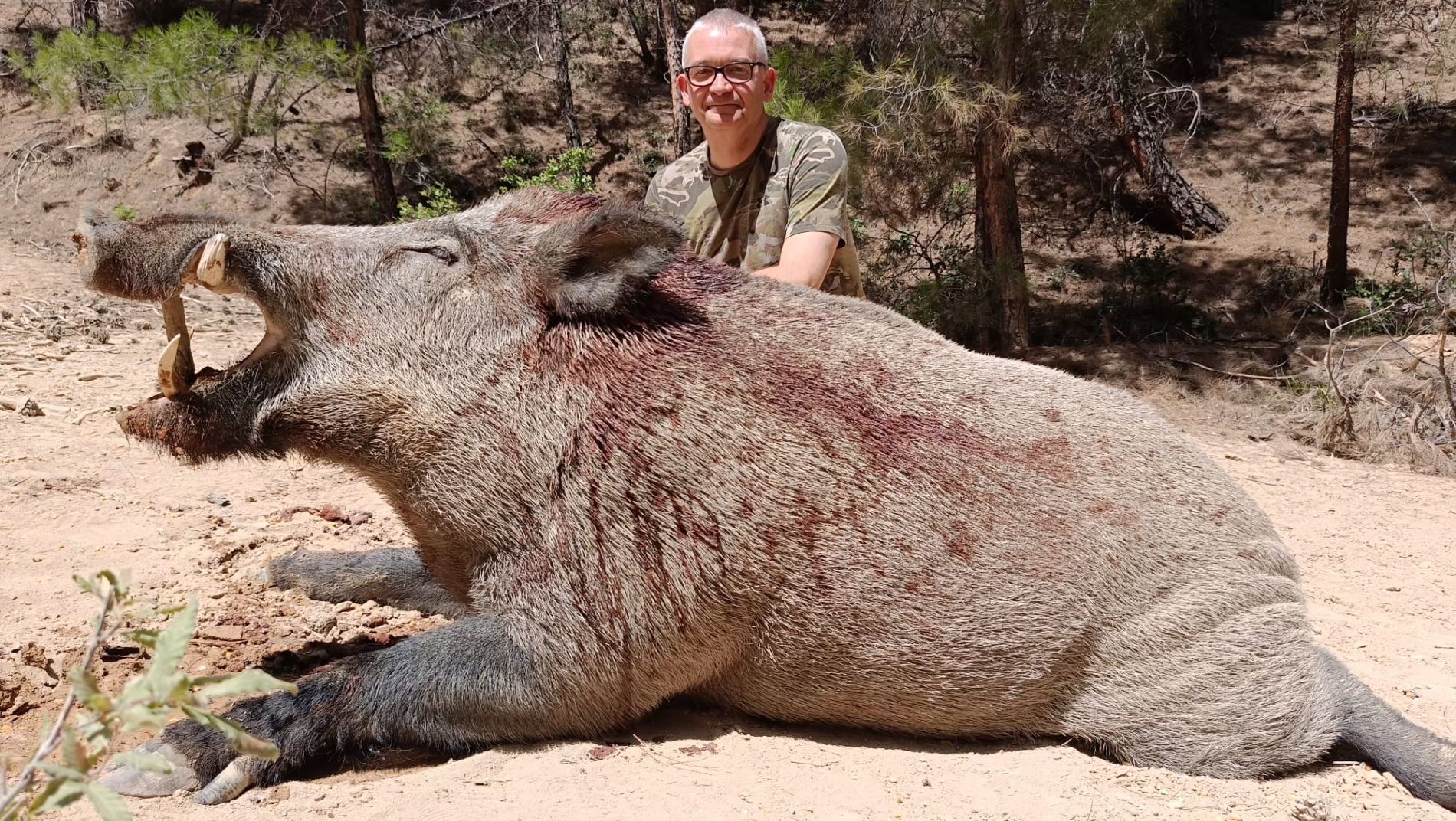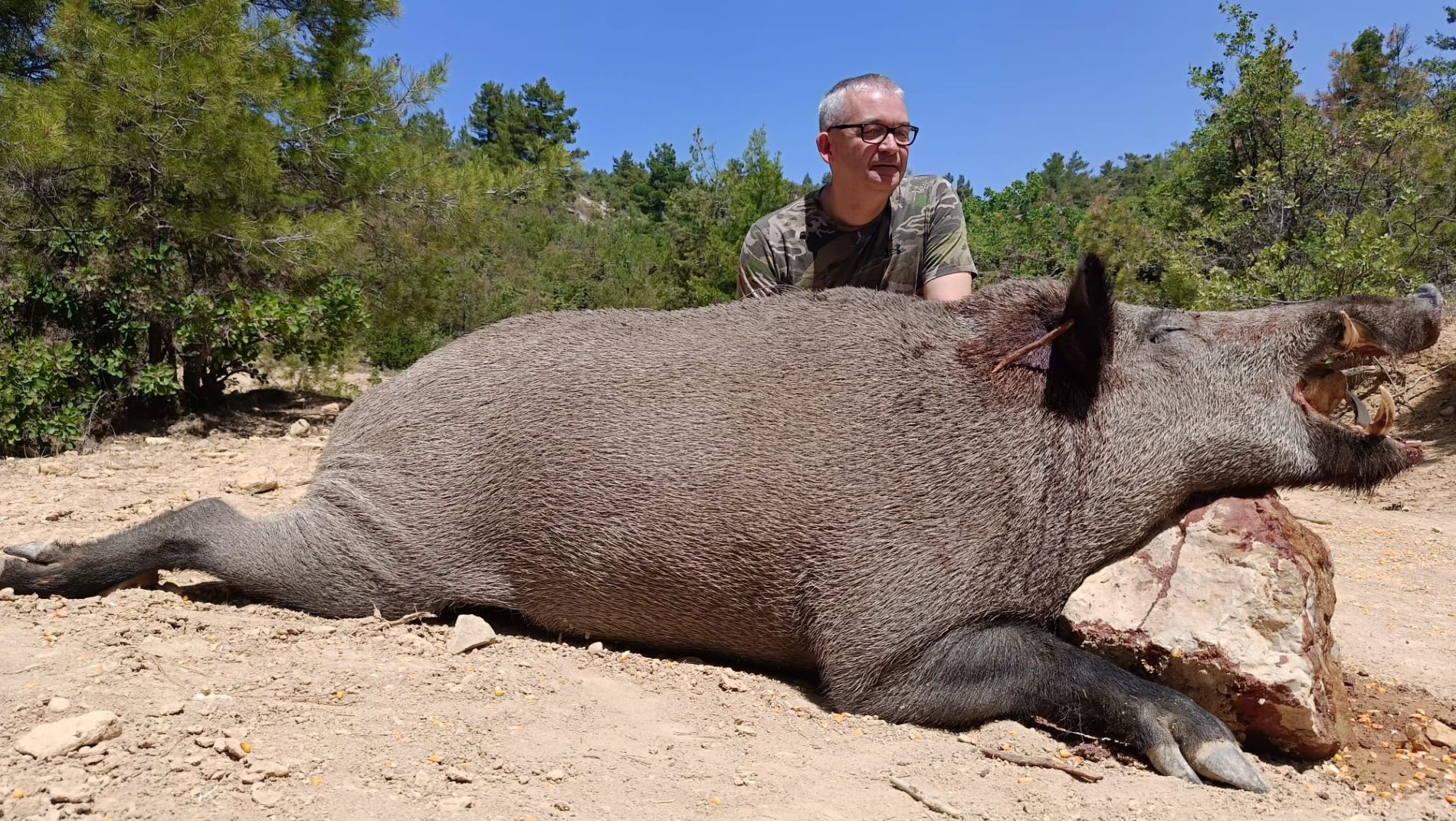 Ein sehr glücklicher Jäger ist gerade von Urlaub und Jagd in der Türkei zurückgekehrt, wo er nicht weniger als 4 große Keiler erlegte, von denen der größte fast 300 kg wog und 26 cm lange Hauer hatte!
