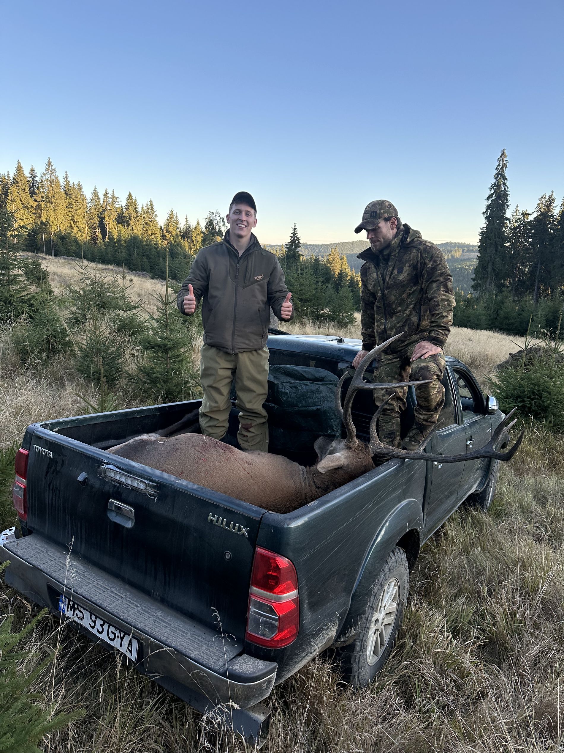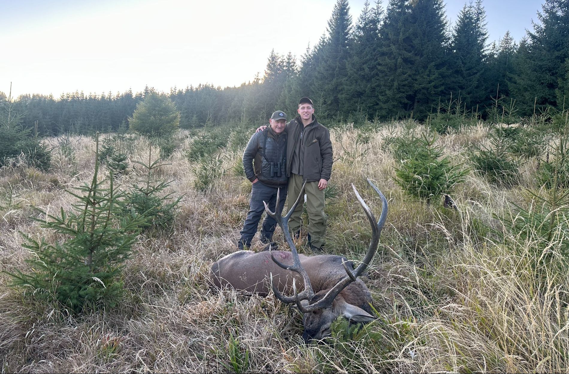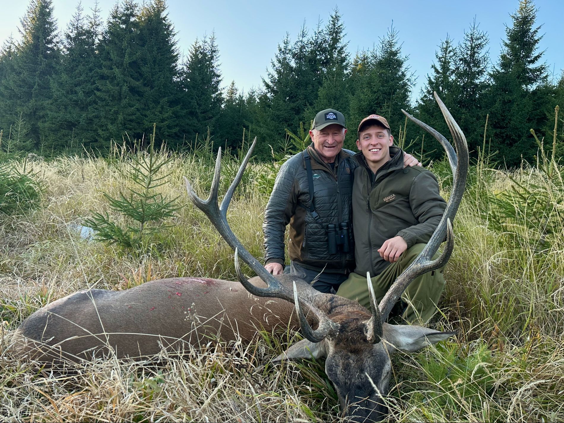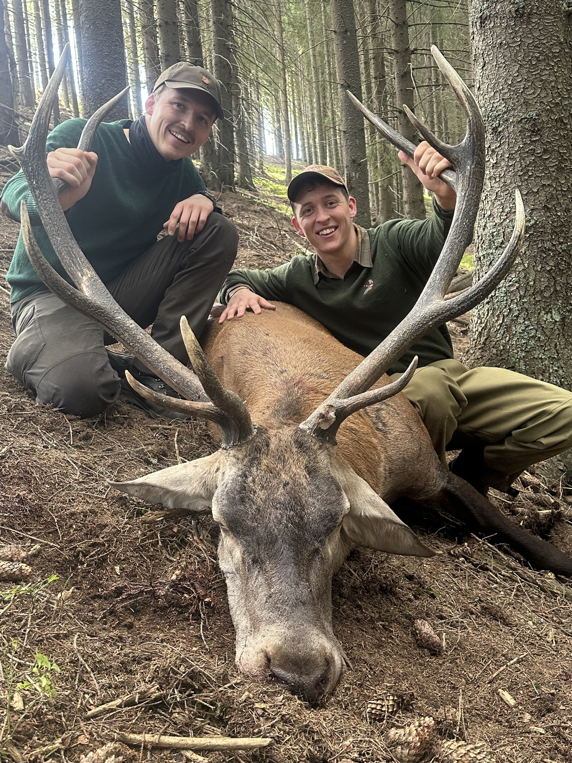 Beide Söhne erlegten jeweils ihren eigenen prächtigen Karpatenhirsch, während Poul stolz an ihrer Seite stand und das Abenteuer miterlebte.