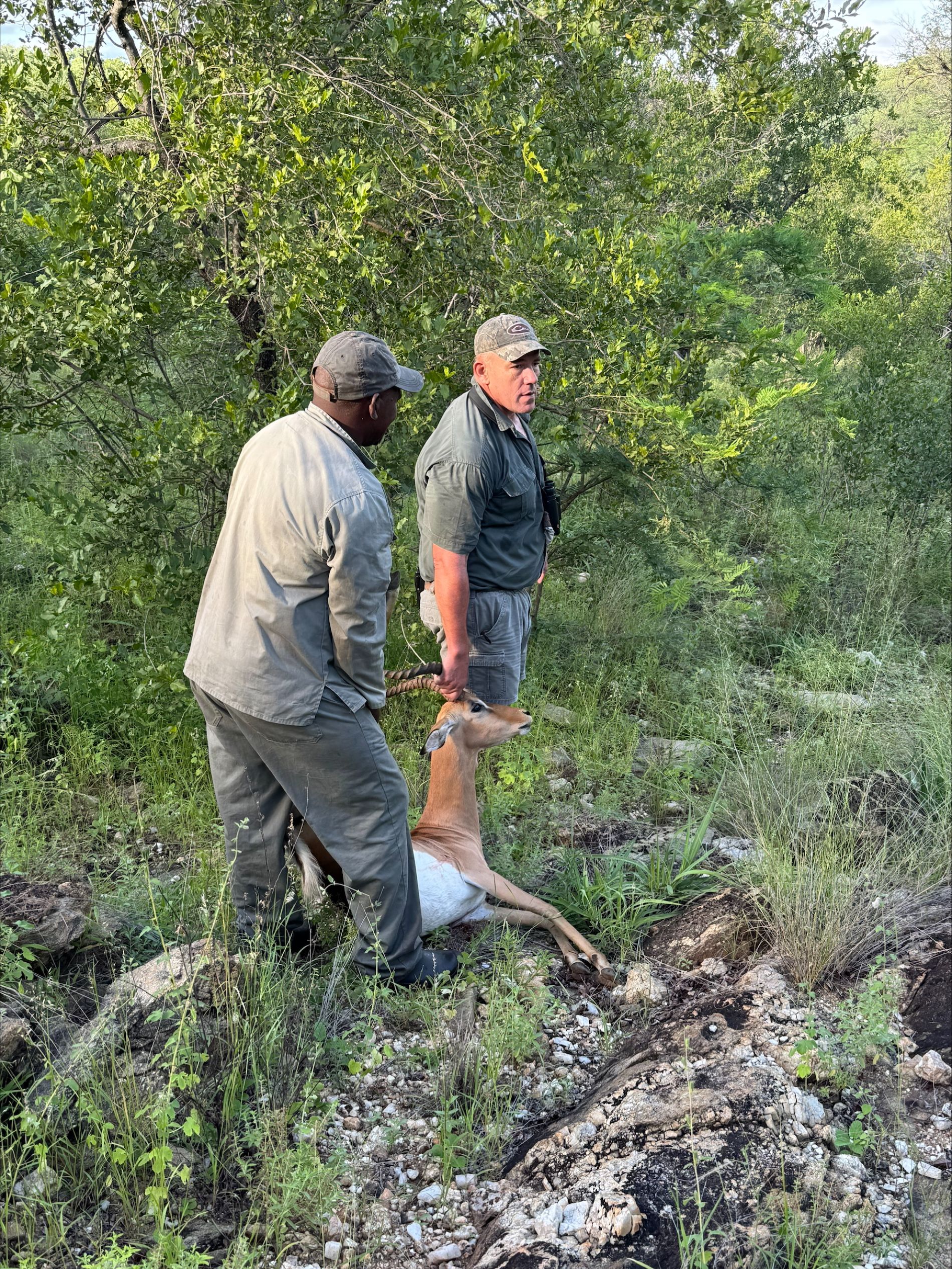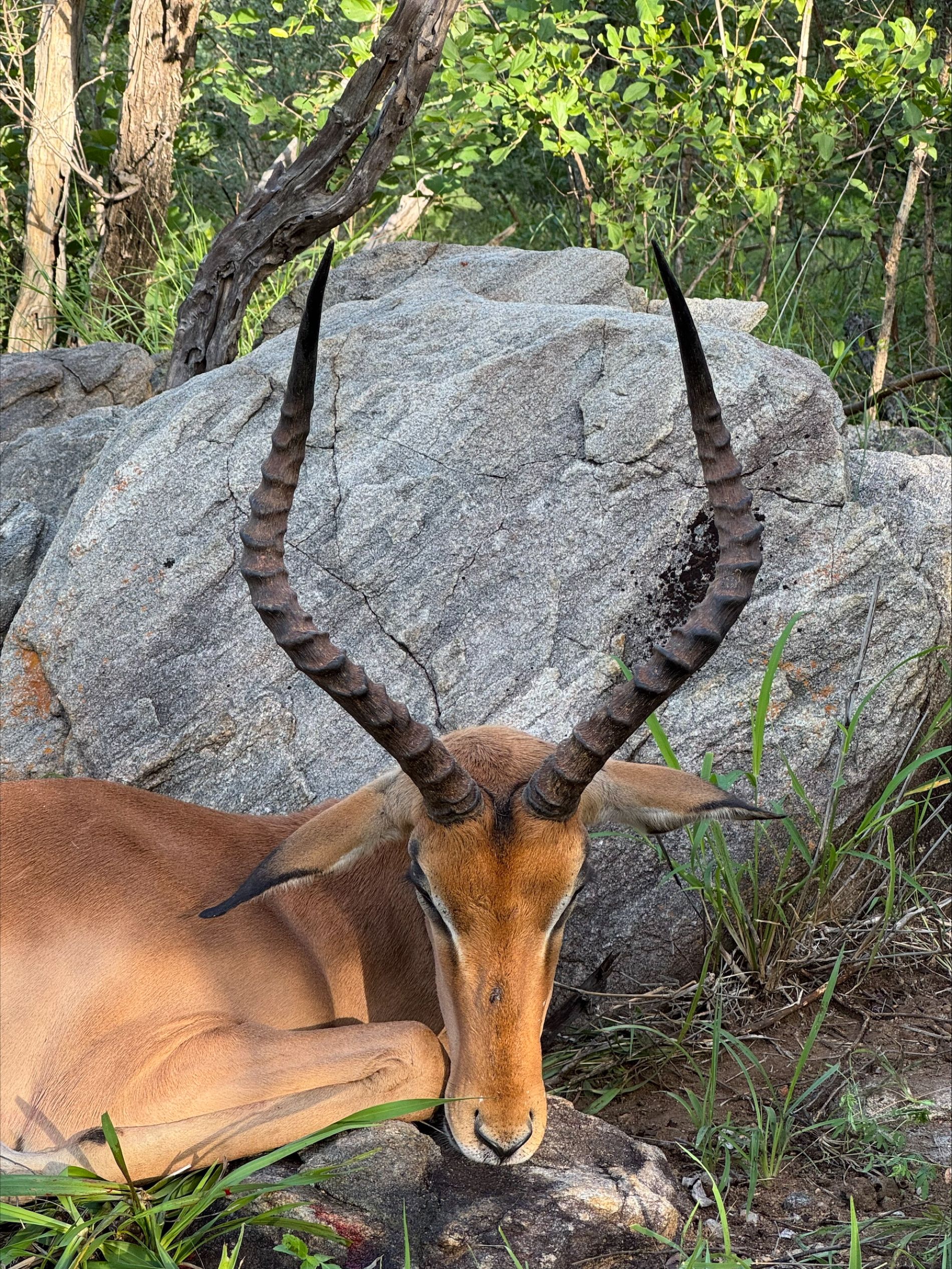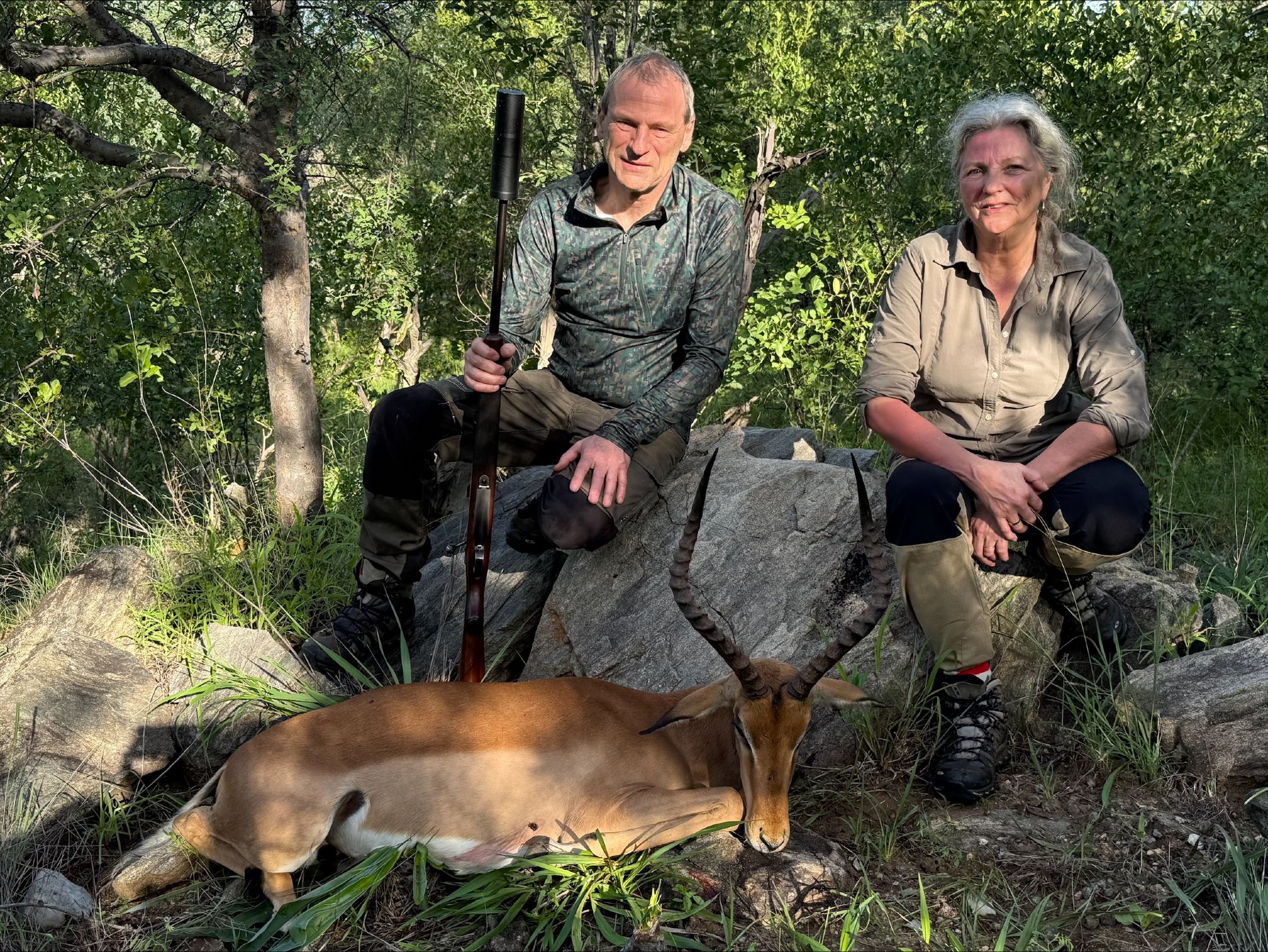 Hanne und John haben gerade eine fantastische Erfahrung in der Balule River Lodge in Südafrika gemacht. Ihre Reise bot spannende Safari-Erlebnisse, ausgezeichnete Verpflegung und einen besonderen Jagdtag, an dem John das Ziel hatte, eine Impala zu erlegen. Mit großem Erfolg gelang es ihm, und er erlegte eine beeindruckend schöne Impala. Herzlichen Glückwunsch!
