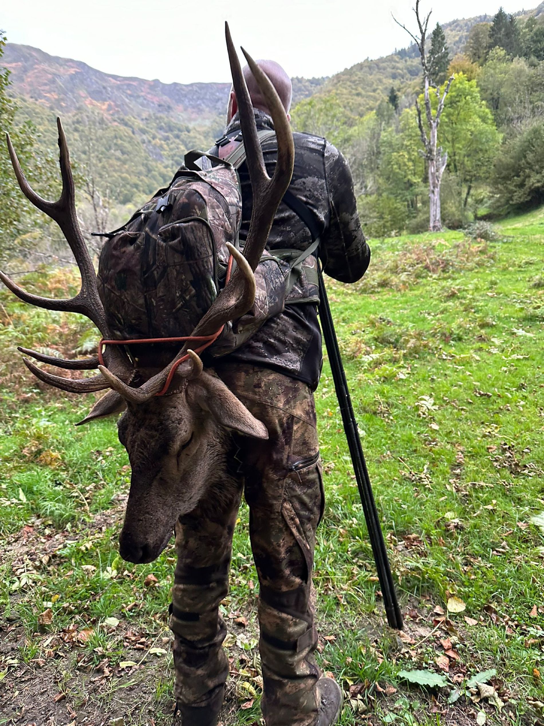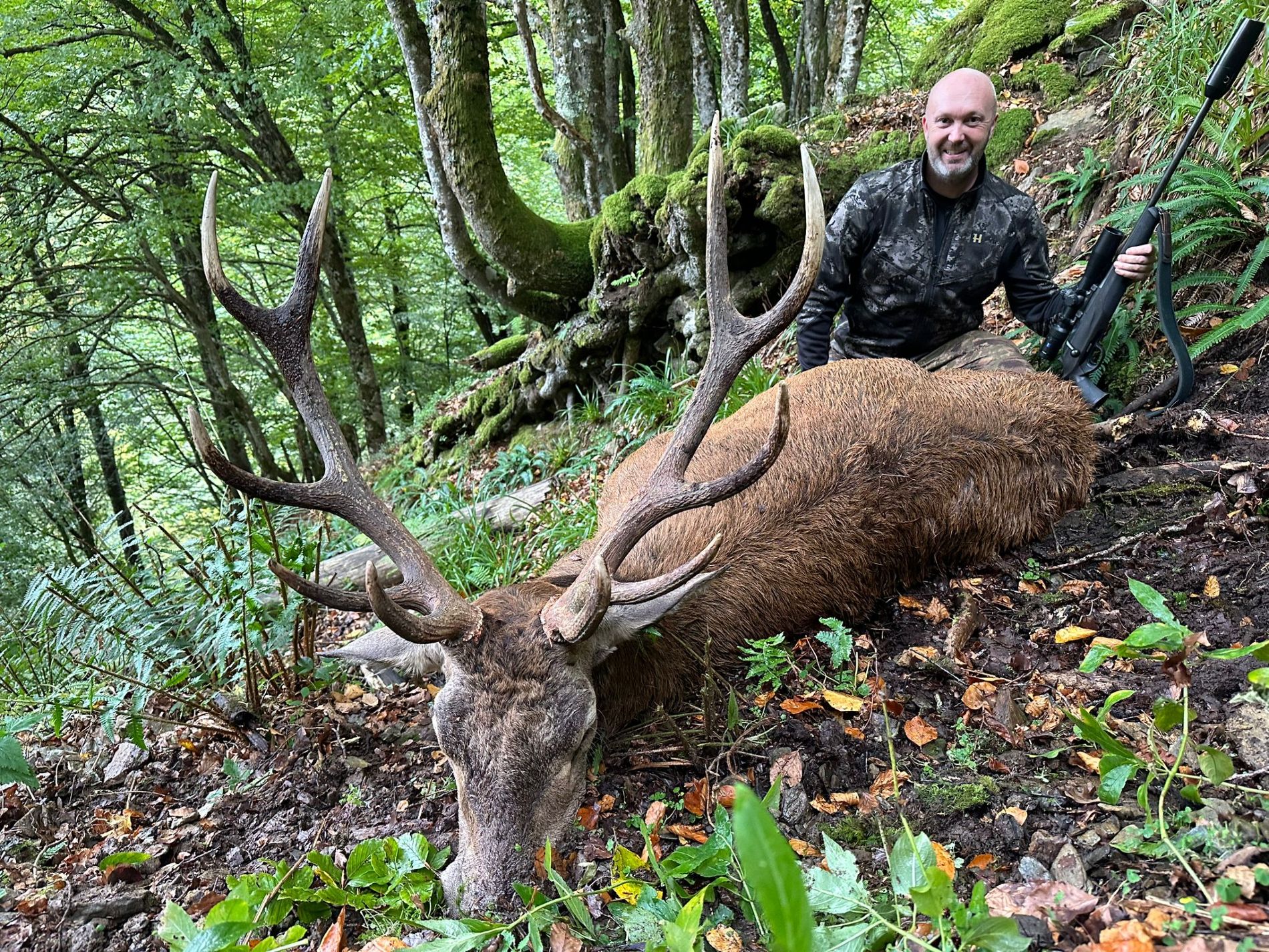 Nach einer harten und aufregenden Jagd bekam Jesper alles, was er sich erhofft hatte, und erlegte diesen unglaublich prächtigen Pyrenäen-Rothirsch.