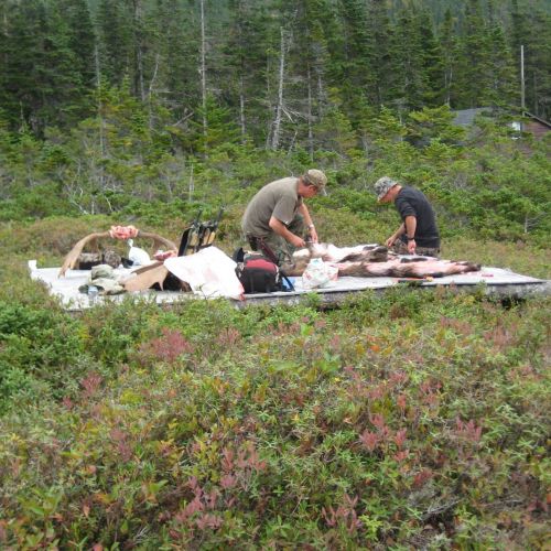 Jäger müssen Flüge nach Deer Lake auf Neufundland buchen, wo sie ihre erste Nacht in einem Hotel verbringen. Am nächsten Tag wird man mit einem auto ins Jagdcamp gebracht. Die Camps erliegt in erstklassigen Jagdgebieten für Elche, Schwarzbären und Karibus im Südwesten Neufundlands. Elche, Schwarzbären und Karibus können alle zu Fuß vom...