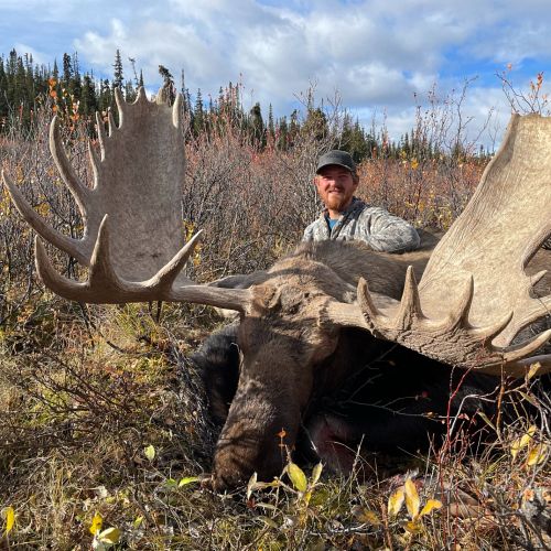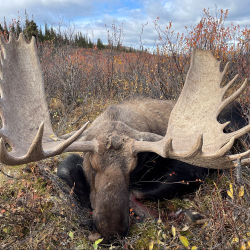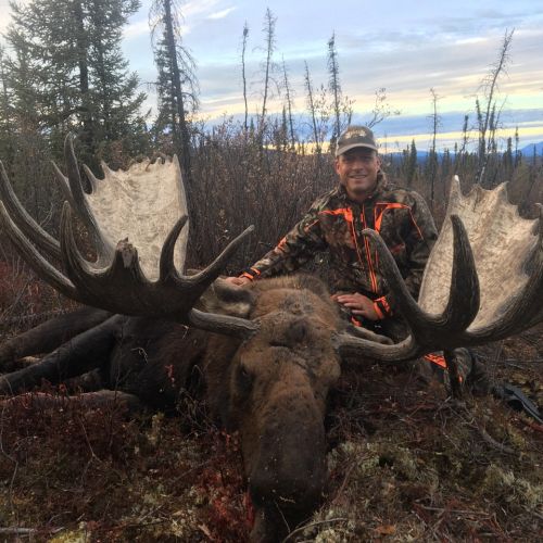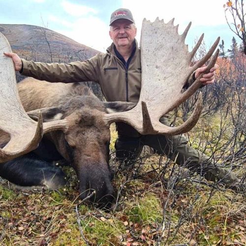 Die Population der Elche hier ist unglaublich dicht, etwa dreimal höher als irgendwo sonst in Nordamerika. Es wird geschätzt, dass bis zu 10.000 Individuen hier ansässig sind, und es gibt mehr als 100 verschiedene Orte, an denen unser Outfitter unsere Jäger platzieren kann. Die Trophäen der Alaska Yukon Elche sind die größten aller Elche. Die durchschnittliche Trophäengröße der Bullen liegt bei beeindruckenden 58-60". Aber jedes Jahr kommen auch  Bullen von bis zu 70" zur Strecke.