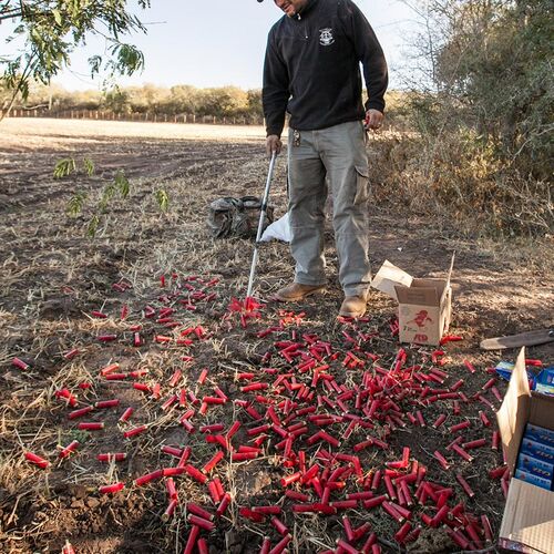 Ich habe etwas Zeit mit Fotografieren verbracht, daher führt Leif unseren Wettbewerb mit über 1.000 Tauben an. Die örtlichen Bauern sind froh, dass wir hier die Tauben geschossen haben. Obwohl wir alle glauben, dass wir noch nie so viele Tauben gesehen haben, ist Jamie traurig, dass dies nicht wirklich ein guter Tag war.