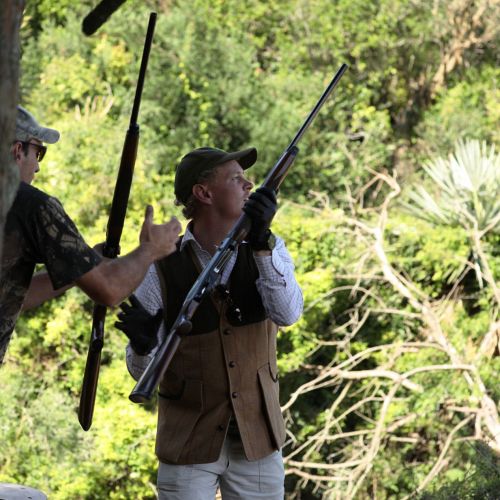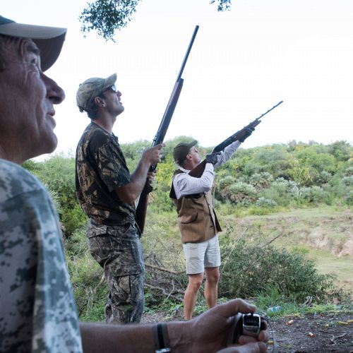 Ein typischer Jagdtag beginnt mit einem guten Frühstück in der Lodge, danach fährt man ins Jagdgebiet. Die Jagdführer haben sich bereits orientiert, wo die Tauben fliegen, damit sie sicherstellen können, dass sie ihre Jagdgäste an den optimalen Stellen platzieren. Wenn Sie im Jagdrevier ankommen, wird jedem Jäger ein erfahrener "Bird Boy" zugewiesen, der ihn an seinen Platz bringt und dafür sorgt, dass er während des Schießens mit Patronen, Erfrischungen usw. versorgt wird.