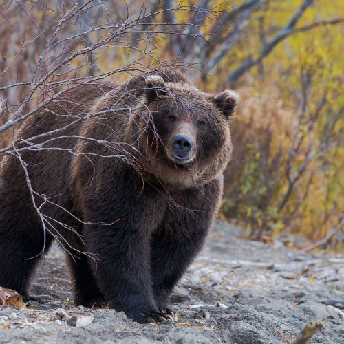 Beschreibung: Große Größenunterschiede zwischen den einzelnen Unterarten, z. B. Syrischer Braunbär (der kleinste Vertreter) und Kamschatka-Braunbär als größte Unterart. Kamschatka-Braunbär erreicht ein Gewicht bis 600 Kilogramm, Schulterhöhe bis 1,45 Meter, Körperlänge 2,70 Meter, Höhe aufgerichtet bis fast 3 Meter. Deutlicher Buckel auf dem Widerrist. Ramsnase, Deckenfarbe variiert von gelblich bis dunkelbraun, häufig silbrige Haarspitzen. Grundsätzlich kann dasselbe gelten wie bei den amerikanischen Braunbären: Die an der Küste lebenden Braunbären (z. B. Kamschatka-Braunbär) wird - sich aufgrund der erhöhten Zufuhr an tierischen Eiweißen durch Lachse - erheblich größer als die Vertreter der Gebirge oder des flachen Binnenlandes.