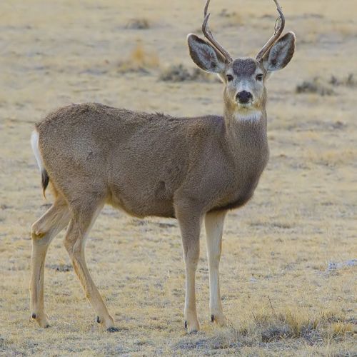 Beschreibung: Mittlerer Hirsch mit Gabelgeweih, Körpergewicht bis 70 Kilogramm, Körperlänge ohne Wedel (15 cm) bis 1,70 Meter, Schulterhöhe bis 90 Zentimeter, bräunliche Decke, weißlicher, häufig oben dunkelabgesetzter Spiegel.