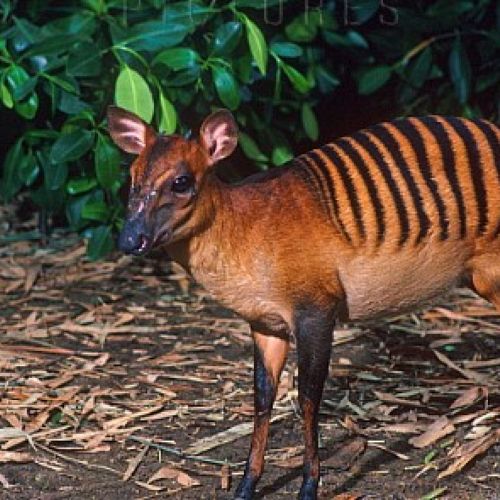 Beskrivelse: Lille, kompakt antilope med karakteristiske mørke zebra-lignende striber på en gyldenbrun pels. Vægten ligger omkring 15-20 kg, og skulderhøjden er cirka 40-50 cm. Har en kort, spids næse og små horn, som ofte er skjult i pelsen. Arten er ekstremt sky og bevæger sig lydløst gennem skoven.