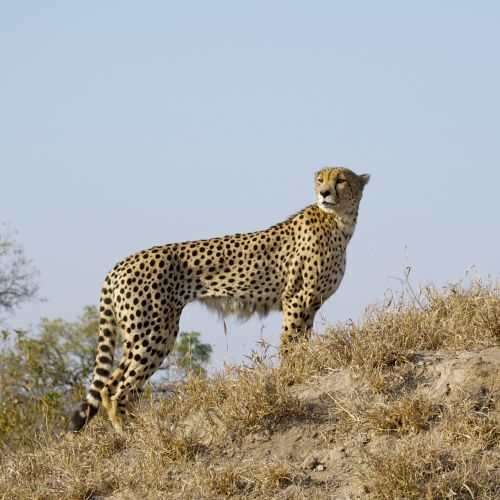 Jagdmethoden: Pirsch. Da der Gepard selten einmal zu seinem Riß zurückkehrt, ist der Ansitz am Luder aussichtslos.